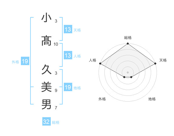 小髙 久美男さんを姓名の画数から五運を鑑定
