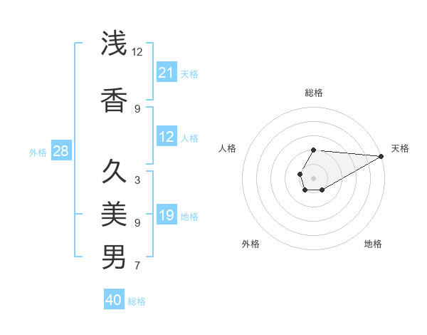 浅香 久美男さんを姓名の画数から五運を鑑定
