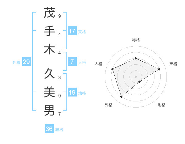 茂手木 久美男さんの天格は17画の4点!