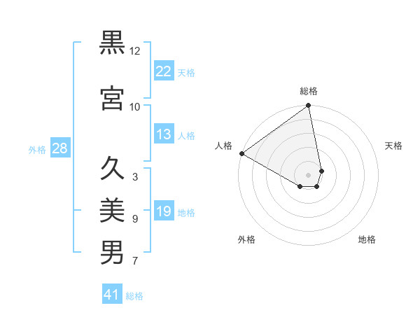 黒宮 久美男さんを姓名の画数から五運を鑑定
