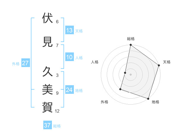 伏見 久美賀さんの総格は37画の5点!