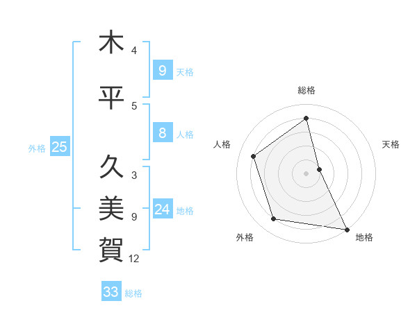 木平 久美賀さんの総格は33画の4点!