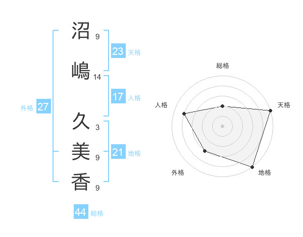 沼嶋 久美香さんを姓名の画数から五運を鑑定