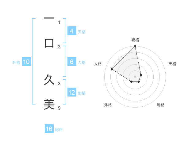 一口 久美さんの総格は16画の5点!