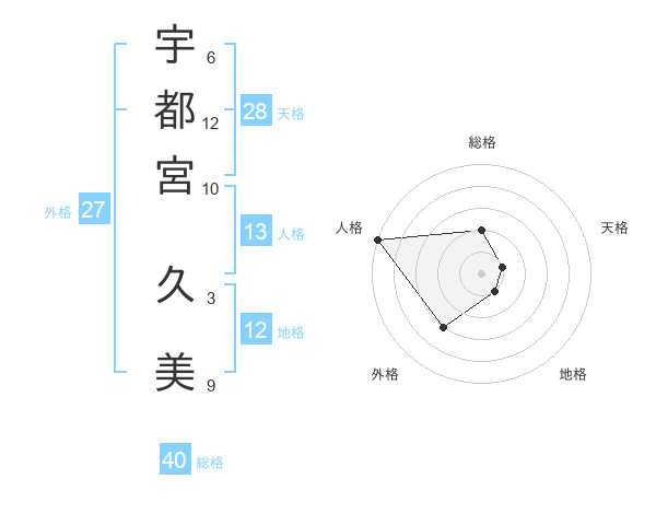 宇都宮 久美さんの総格は40画の2点