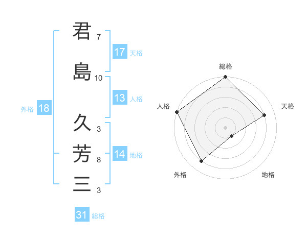 君島 久芳三さんを姓名の画数から五運を鑑定