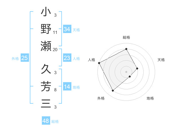 小野瀬 久芳三さんを姓名の画数から五運を鑑定