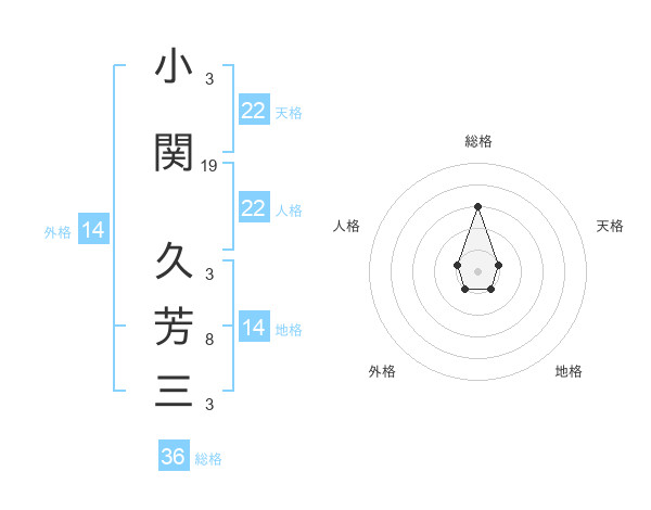 小関 久芳三さんを姓名の画数から五運を鑑定