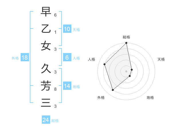 早乙女 久芳三さんを姓名の画数から五運を鑑定