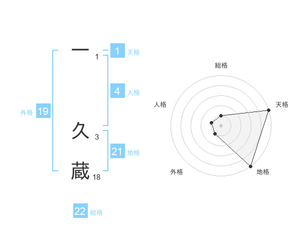 一 久蔵さんの総格は22画の1点!