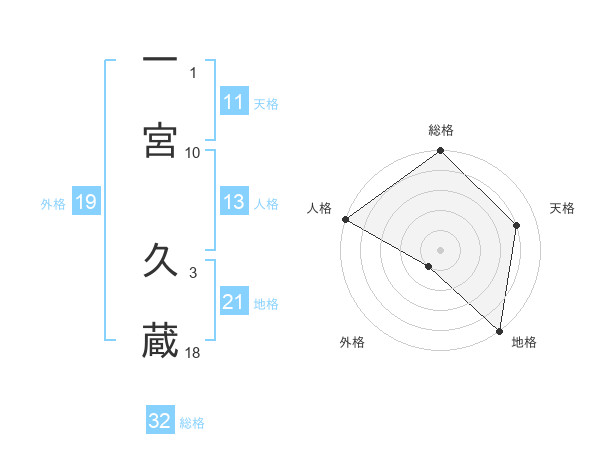 一宮 久蔵さんの総格は32画の5点!