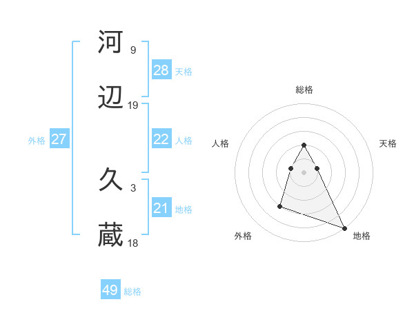 河辺 久蔵さんの総格は49画の2点!