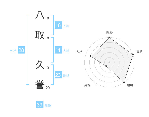 八取 久誉さんの総格は39画の5点!