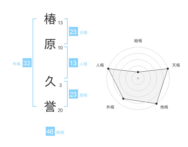 椿原 久誉さんの地格は23画の5点!