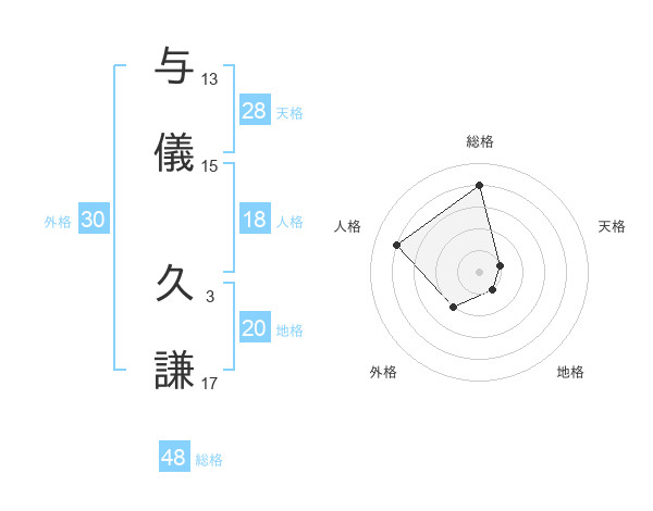 与儀 久謙さんを姓名の画数から五運を鑑定