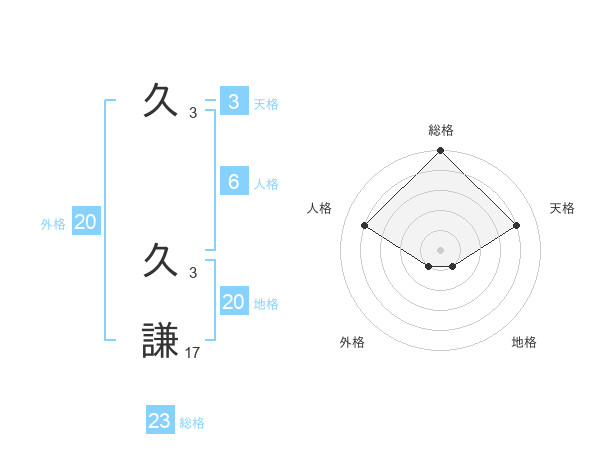 久 久謙さんの総格は23画の5点!