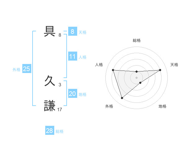 具 久謙さんの総格は28画の1点!