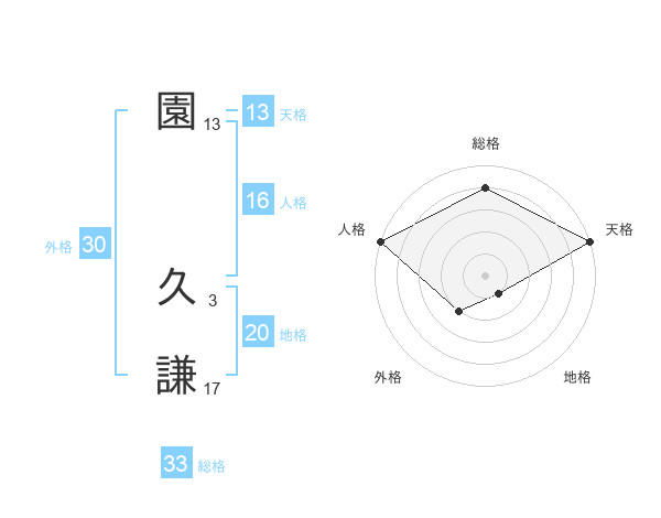 園 久謙さんの総格は33画の4点!