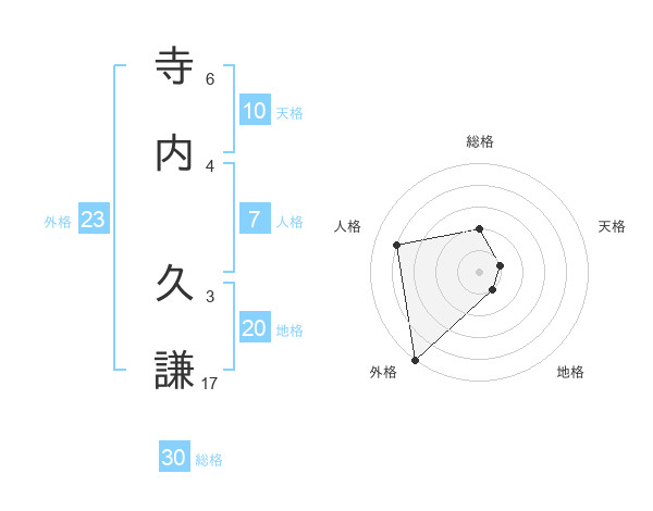 寺内 久謙さんの総格は30画の2点!