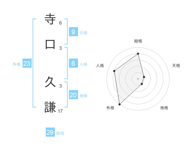 寺口 久謙さんを姓名の画数から五運を鑑定