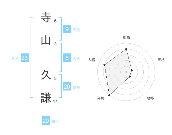 寺山 久謙さんの総格は29画の4点!