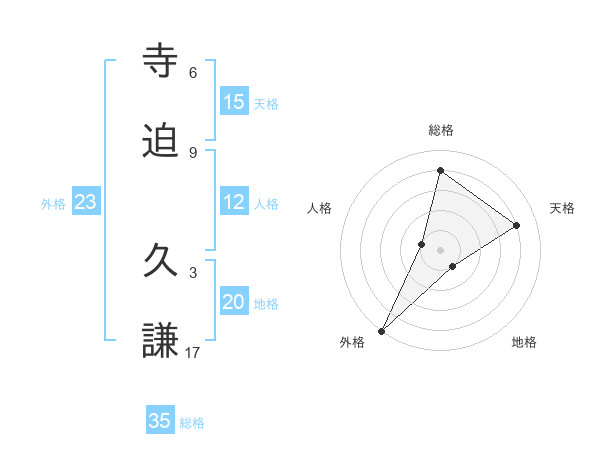 寺迫 久謙さんの総格は35画の4点!