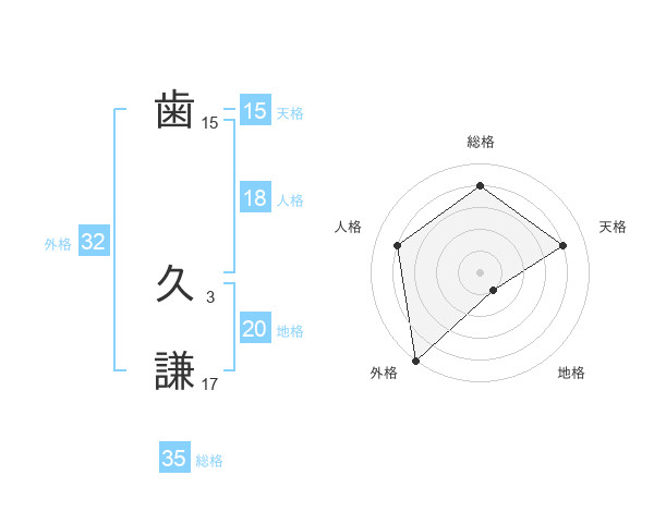 歯 久謙さんの総格は35画の4点!