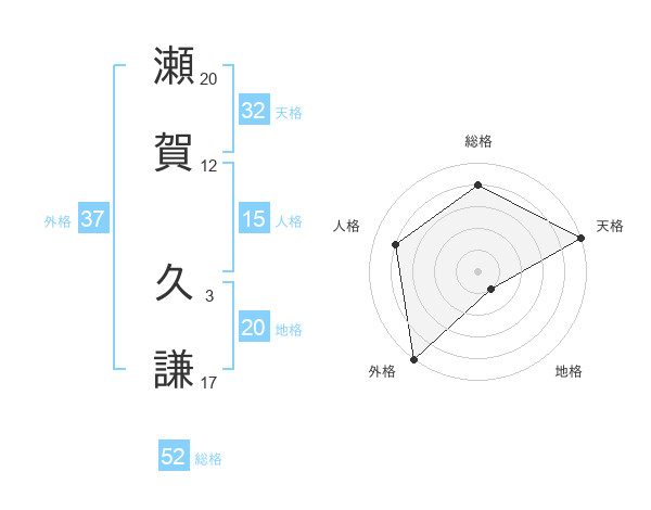 瀬賀 久謙さんの外格は37画の5点!