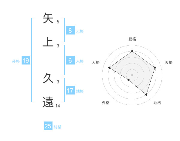 矢上 久遠さんを姓名の画数から五運を鑑定