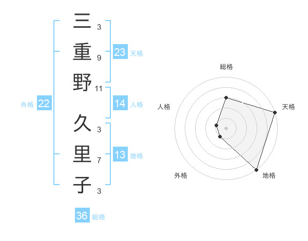 三重野 久里子さんを姓名の画数から五運を鑑定