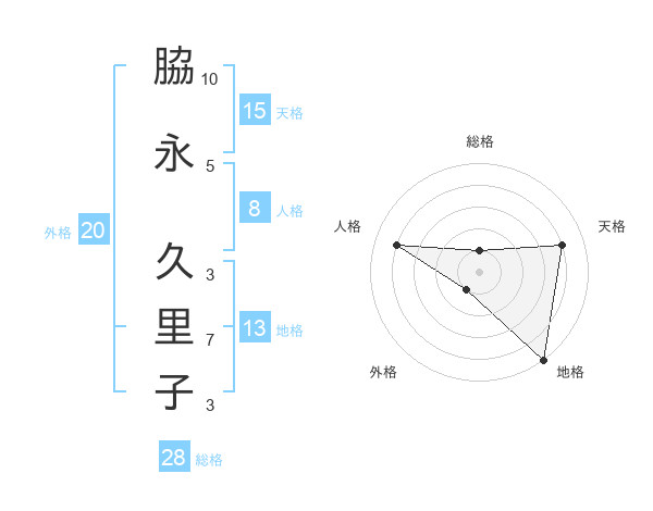 脇永 久里子さんの総格は28画の1点!