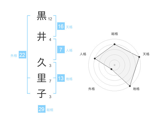黒井 久里子さんを姓名の画数から五運を鑑定