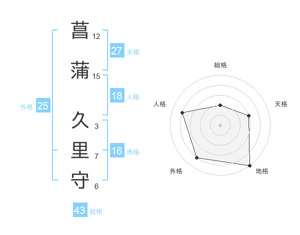 菖蒲 久里守さんを姓名の画数から五運を鑑定