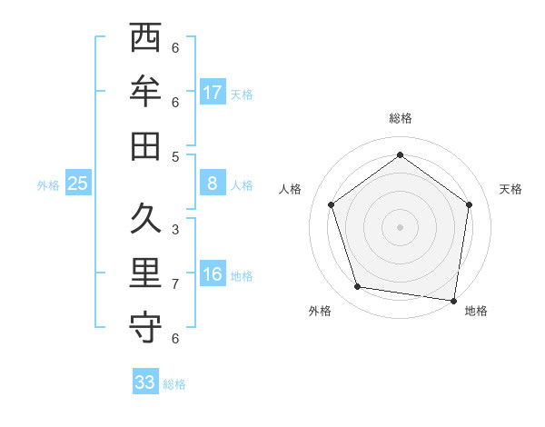 西牟田 久里守さんを姓名の画数から五運を鑑定
