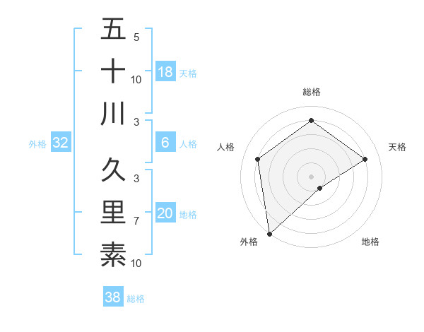 五十川 久里素さんを姓名の画数から五運を鑑定