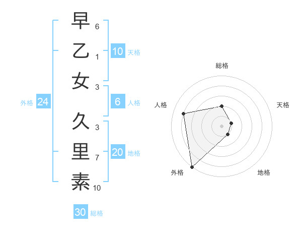 早乙女 久里素さんを姓名の画数から五運を鑑定
