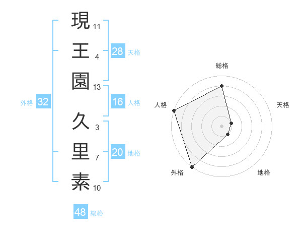 現王園 久里素さんを姓名の画数から五運を鑑定