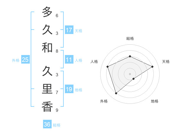 多久和 久里香さんを姓名の画数から五運を鑑定