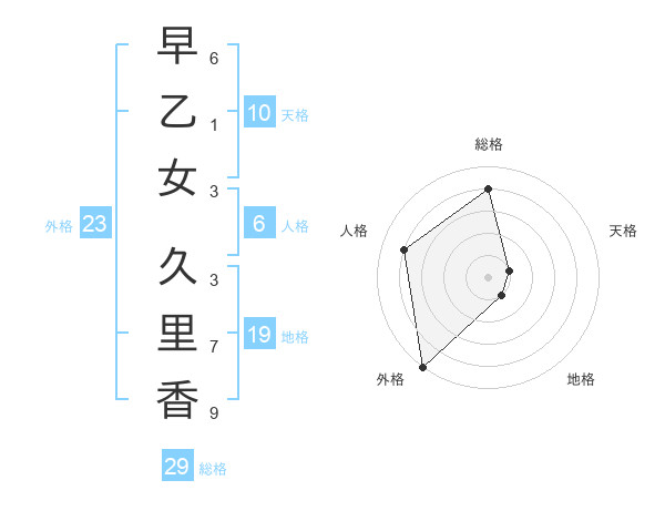 早乙女 久里香さんを姓名の画数から五運を鑑定