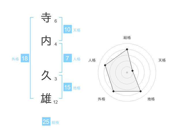 寺内 久雄さんを姓名の画数から五運を鑑定