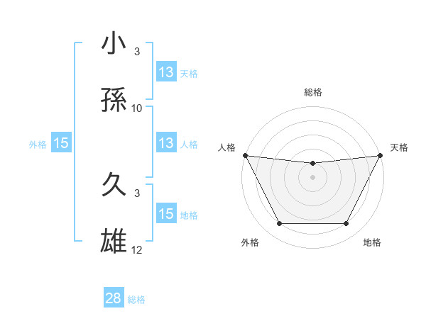 小孫 久雄さんの総格は28画の1点!