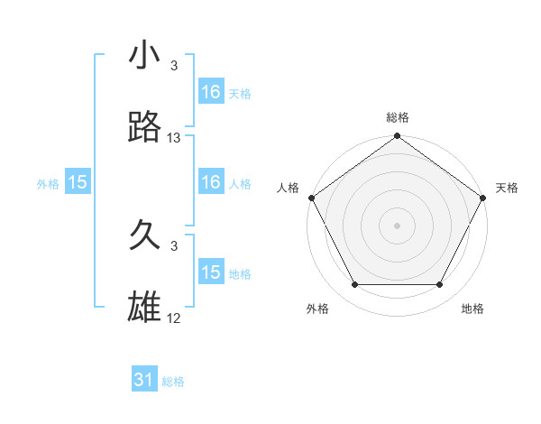 小路 久雄さんの総格は31画の5点!
