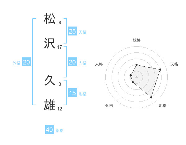 松沢 久雄さんを姓名の画数から五運を鑑定