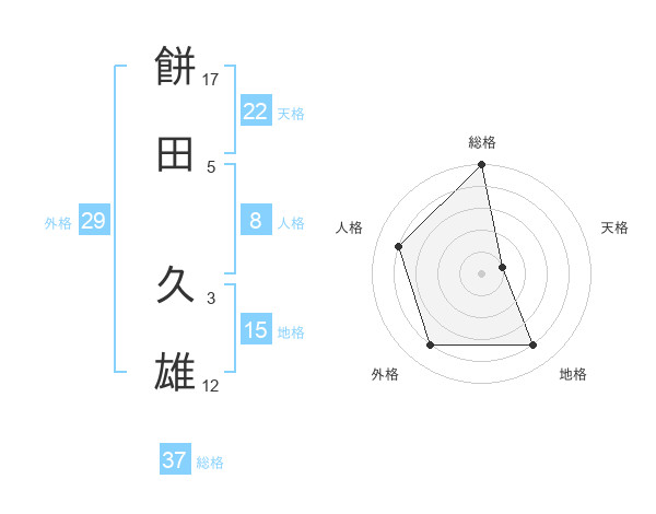 餅田 久雄さんを姓名の画数から五運を鑑定