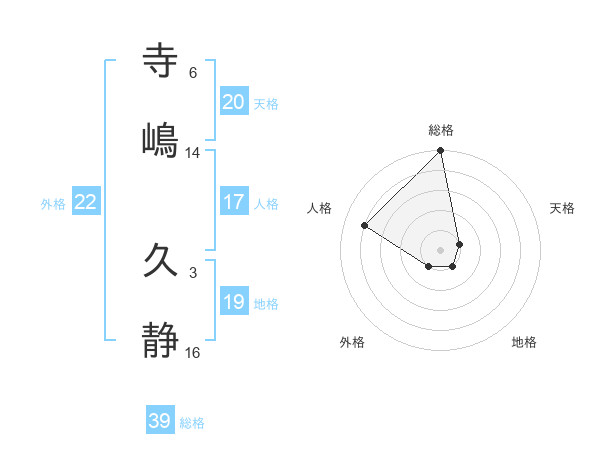 寺嶋 久静さんを姓名の画数から五運を鑑定