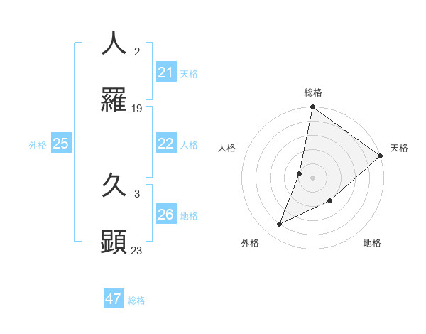 人羅 久顕さんの総格は47画の5点!