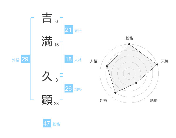 吉満 久顕さんの総格は47画の5点!