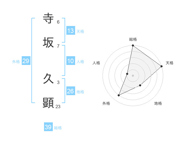 寺坂 久顕さんの総格は39画の5点!