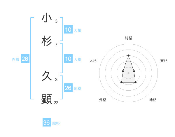 小杉 久顕さんを姓名の画数から五運を鑑定