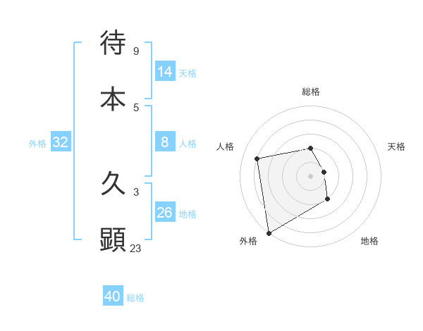 待本 久顕さんの外格は32画の5点!